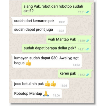 Robot Trading bekerja tanpa lelah 24/7. Anda tidak perlu terjaga semalaman atau khawatir ketinggalan peluang perdagangan. Semua eksekusi dilakukan secara otomatis dan instan.