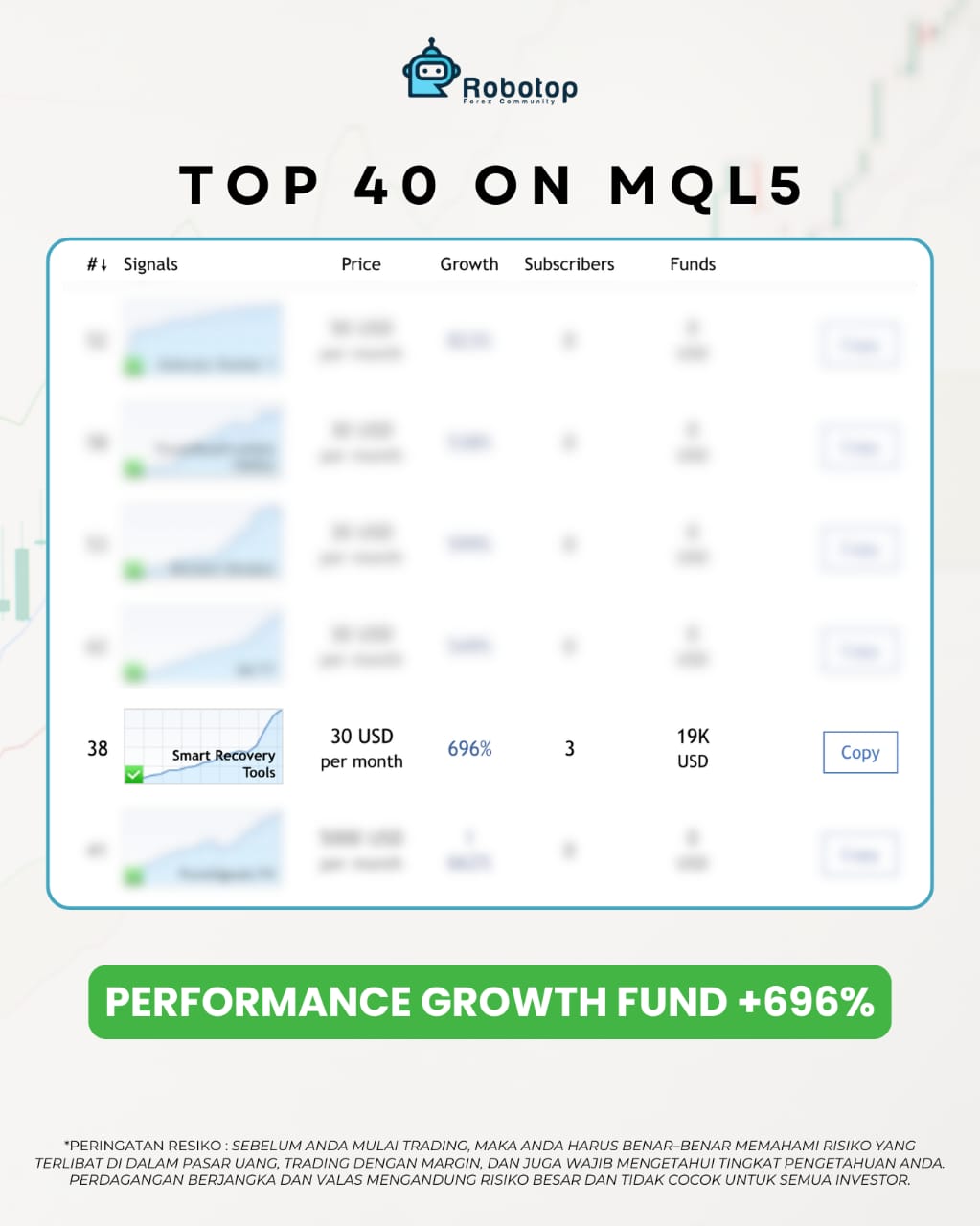 Portfolio Performa Trading kami tercatat dan masuk ke dalam Jajaran Top 40 di MQL5 Dari seluruh trader Dunia